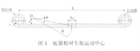 當(dāng)鋼板彈簧處于平直狀態(tài)時(shí),軌跡圓弧半徑基線(兩卷耳中心的連線)的夾角θ=arCsin(e/R)。
