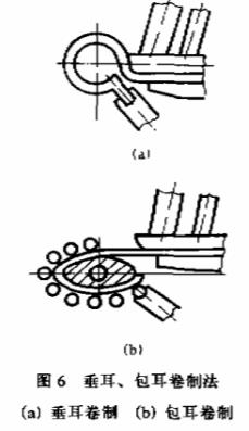在全液壓卷耳機(jī)上,卷制垂耳和包耳的最終工布如上圖6所示,其余工步與圖5相同。 |
